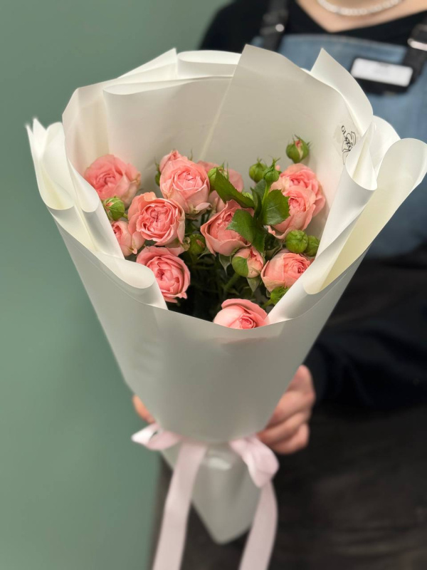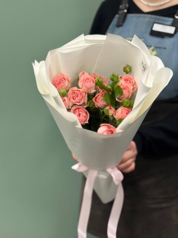 В составе букета: кустовые розы - 3 шт, упаковка - 2 шт.
