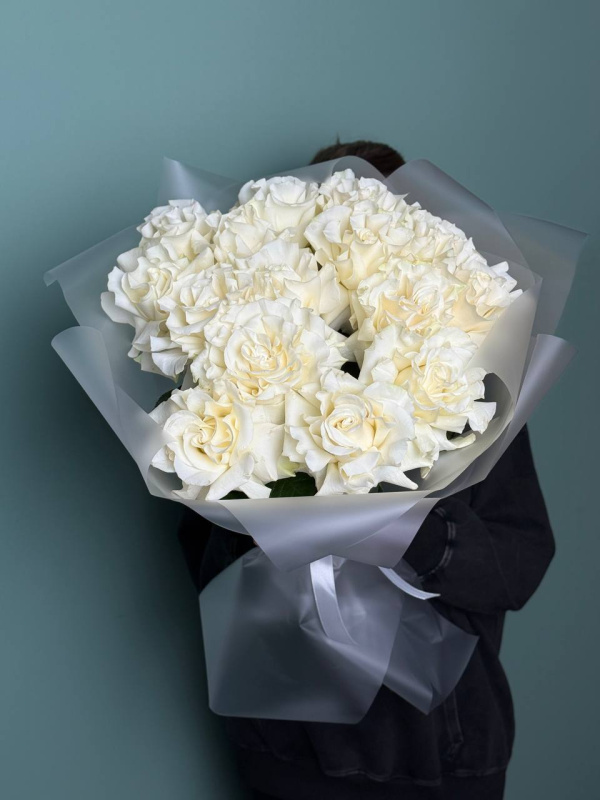 Купить 15 белых французских роз вы можете в компании «Глазурь» - магазин и доставка цветов в Альметьевске, оформив заказ в интернет магазине, или