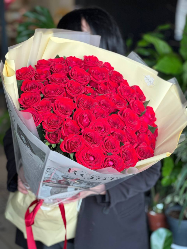Купить 51 красная роза высотой 50-60 см вы можете в компании «Глазурь» - магазин и доставка цветов в Альметьевске, оформив заказ в интернет магазине, или