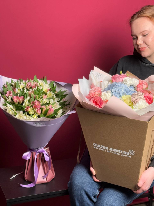 Купить Бережная упаковка для вашего букета вы можете в компании «Глазурь» - магазин и доставка цветов в Альметьевске, оформив заказ в интернет магазине, или