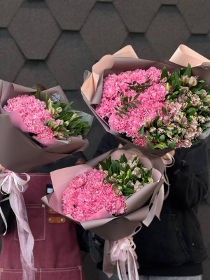 Нежнейшее ассорти розовых и кремовых роз в букете - живописно сочетается с эвкалиптом, кружевными диантусами, нежной эустомой и альстромерией. Такой букет станет лучшим подарком для истинных романтиков и мечтателей.