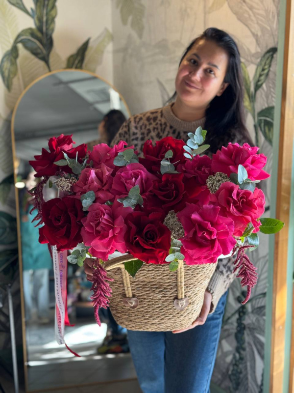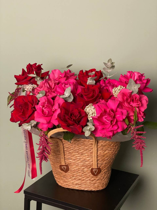Нежнейшее ассорти розовых и кремовых роз в букете - живописно сочетается с эвкалиптом, кружевными диантусами, нежной эустомой и альстромерией. Такой букет станет лучшим подарком для истинных романтиков и мечтателей.